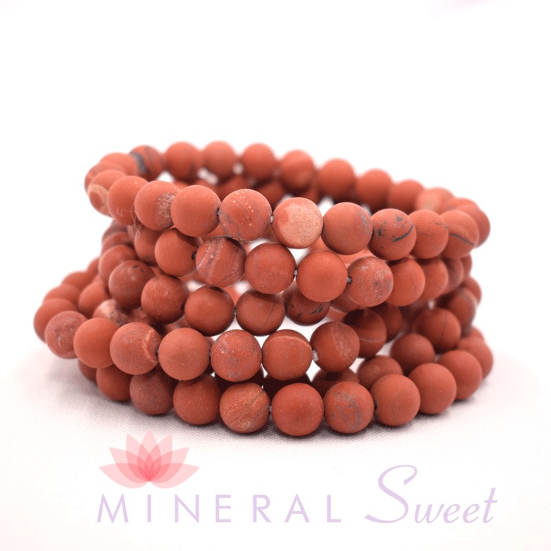Pulsera Jaspe rojo mate perlas redondas 8mm
