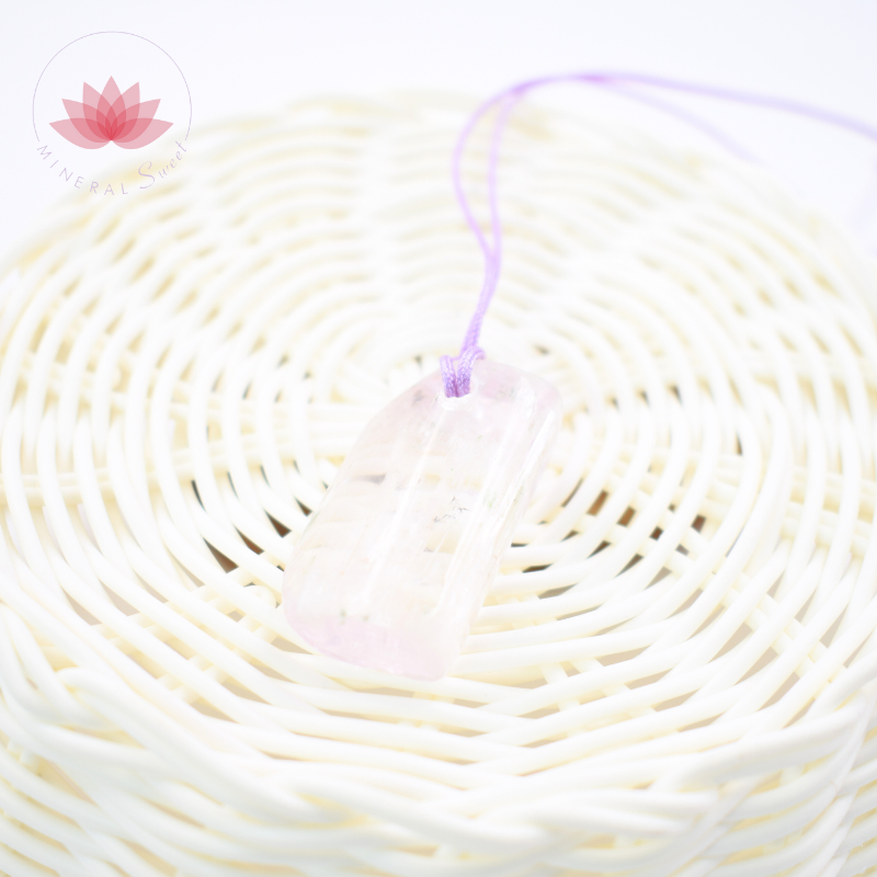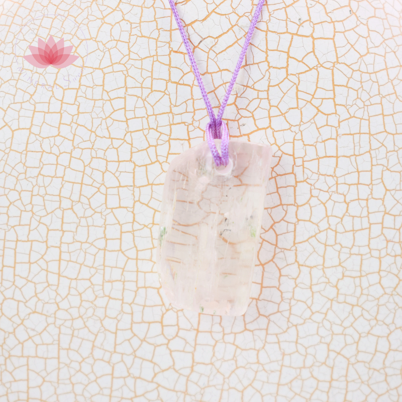 Colgante de Kunzita pulida por todas sus caras. Con un cordón en color malva.