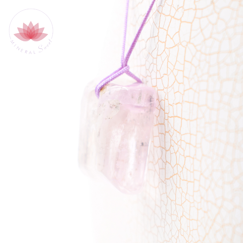 Kunzita pulida de AFganistán en colgante, con un cordón en color lila