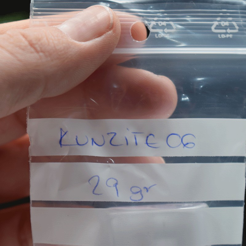 La kunzita es una variedad rara de espodumena, mineral de la clase de los silicatos (subclase de los inosilicatos, familia de los piroxenos). De composición ideal LiAlSi2O6, generalmente comporta rastres de ferro, manganès, magnesi, calci, sodi, potassi i aigua. Hay kunzitas de varios colores: incolora, blanca, gris, amarillenta, verdosa, verde, amarilla, rosa, violeta claro, blanco grisáceo, lila, etc.