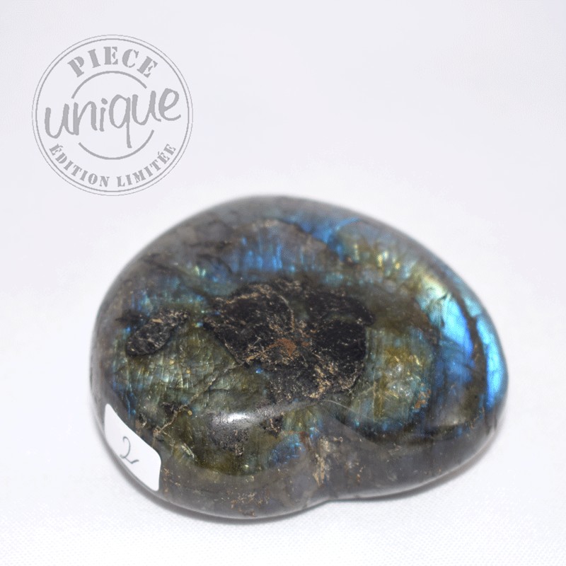 La labradorita, con su irisación particular, ayuda a disipar el velo sombrío de las ilusiones que a menudo resultan de las creencias obsoletas y de los bloqueos, y que llevan a reproducir, en bucle, esquemas que ya no corresponden a la realidad, al ahora, y que ya no responden a las necesidades esenciales del momento.