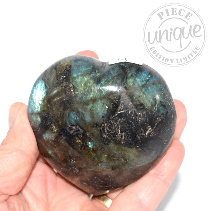 La labradorita, con su irisación particular, ayuda a disipar el velo sombrío de las ilusiones que a menudo resultan de las creencias obsoletas y de los bloqueos, y que llevan a reproducir, en bucle, esquemas que ya no corresponden a la realidad, al ahora, y que ya no responden a las necesidades esenciales del momento.