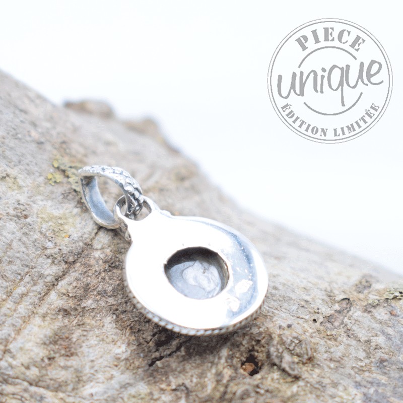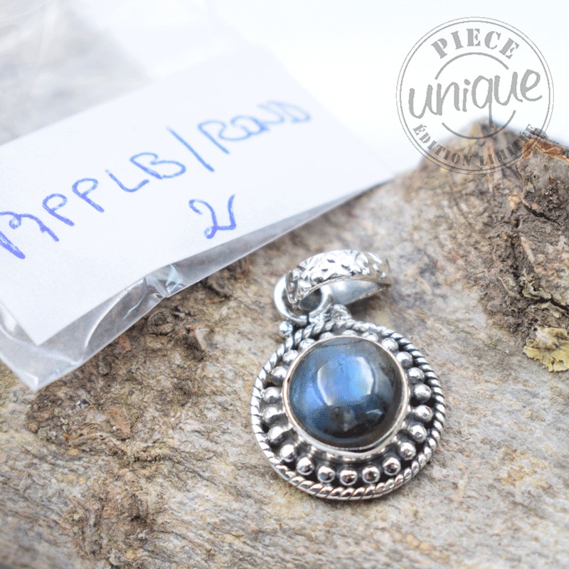 Bello colgante en Labradorita montado en plata de 925. Forma circular.