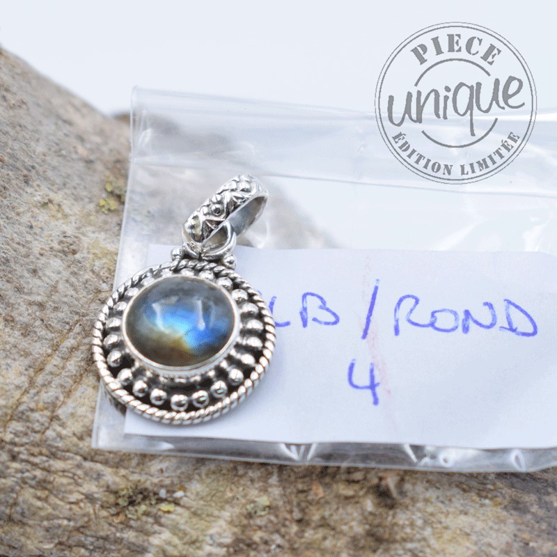 Bello colgante en Labradorita montado en plata de 925. Bonita forma circular.