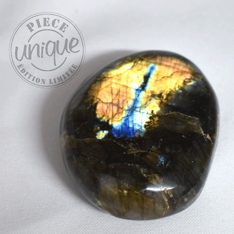 La labradorita, con su irisación particular, ayuda a disipar el velo sombrío de las ilusiones que a menudo resultan de las creencias obsoletas y de los bloqueos, y que llevan a reproducir, en bucle, esquemas que ya no corresponden a la realidad, al ahora, y que ya no responden a las necesidades esenciales del momento.