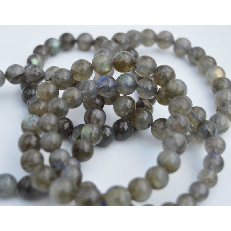 Bonita pulsera en Labradorita, perlas redondas 8mm.