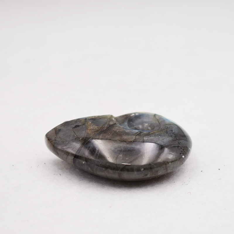 Bonita pieza de Labradorita tallada a mano en forma de Amonites.