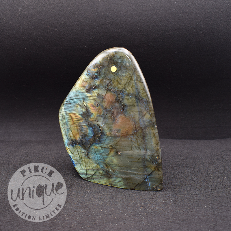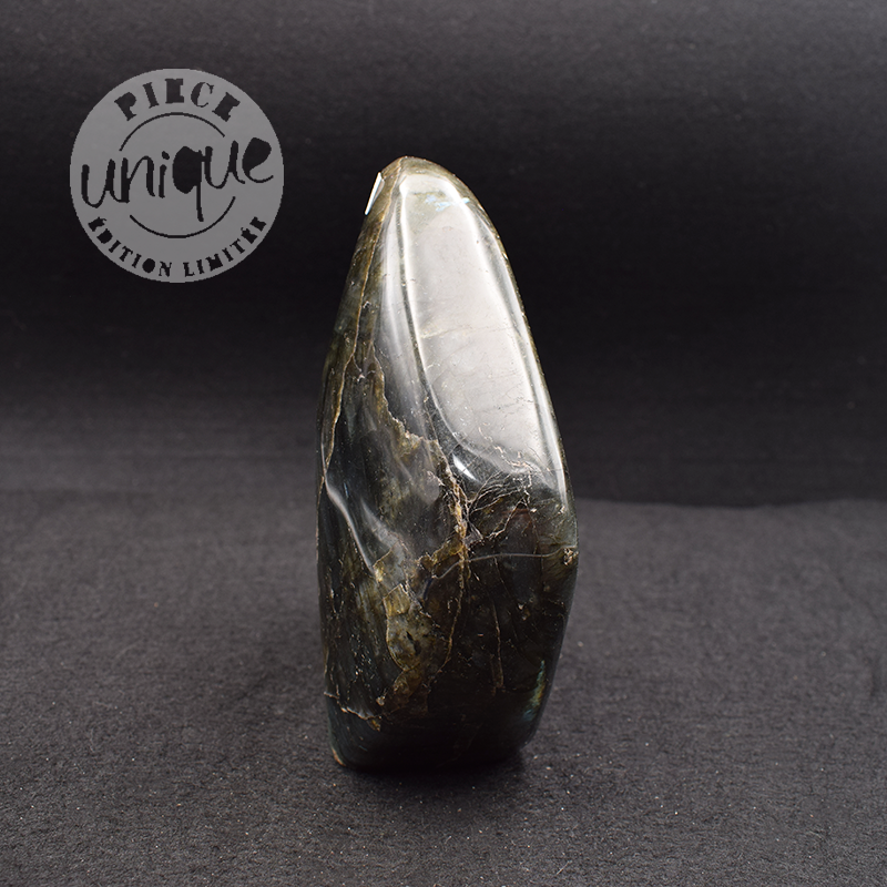 La labradorita, con su irisación particular, ayuda a disipar el velo sombrío de las ilusiones que a menudo resultan de las creencias obsoletas y de los bloqueos, y que llevan a reproducir, en bucle, esquemas que ya no corresponden a la realidad, al ahora, y que ya no responden a las necesidades esenciales del momento.