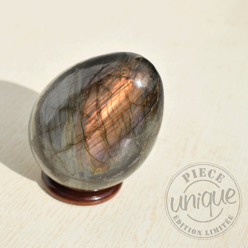 La labradorita, con su irisación particular, ayuda a disipar el velo sombrío de las ilusiones que a menudo resultan de las creencias obsoletas y de los bloqueos, y que llevan a reproducir, en bucle, esquemas que ya no corresponden a la realidad, al ahora, y que ya no responden a las necesidades esenciales del momento.