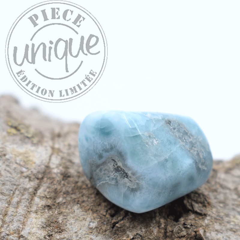 Es una piedra de una gran dulzura, de ternura. Su color apacigua, relaja. Es armonía, ligereza de ser. Tiene la cualidad de cazar los miedos, los temores, los sentimientos de culpa. Por su tono azul celeste, es anti estrés.