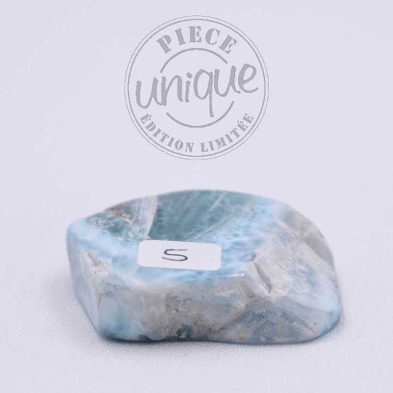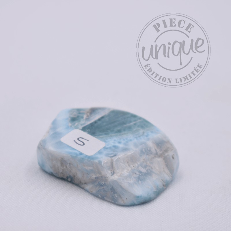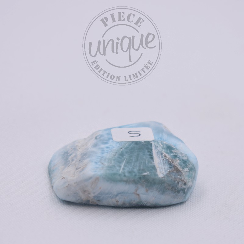 Es una piedra de una gran dulzura, de ternura. Su color apacigua, relaja. Es armonía, ligereza de ser. Tiene la cualidad de cazar los miedos, los temores, los sentimientos de culpa. Por su tono azul celeste, es anti estrés.