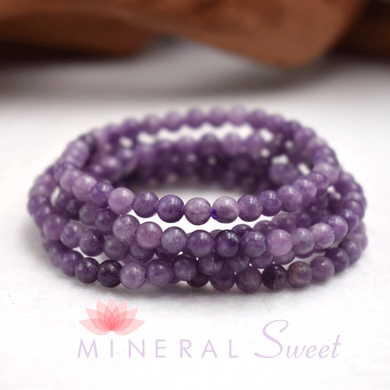 Pulsera infantil en Lepidolita, perlas redondas de 4 mm