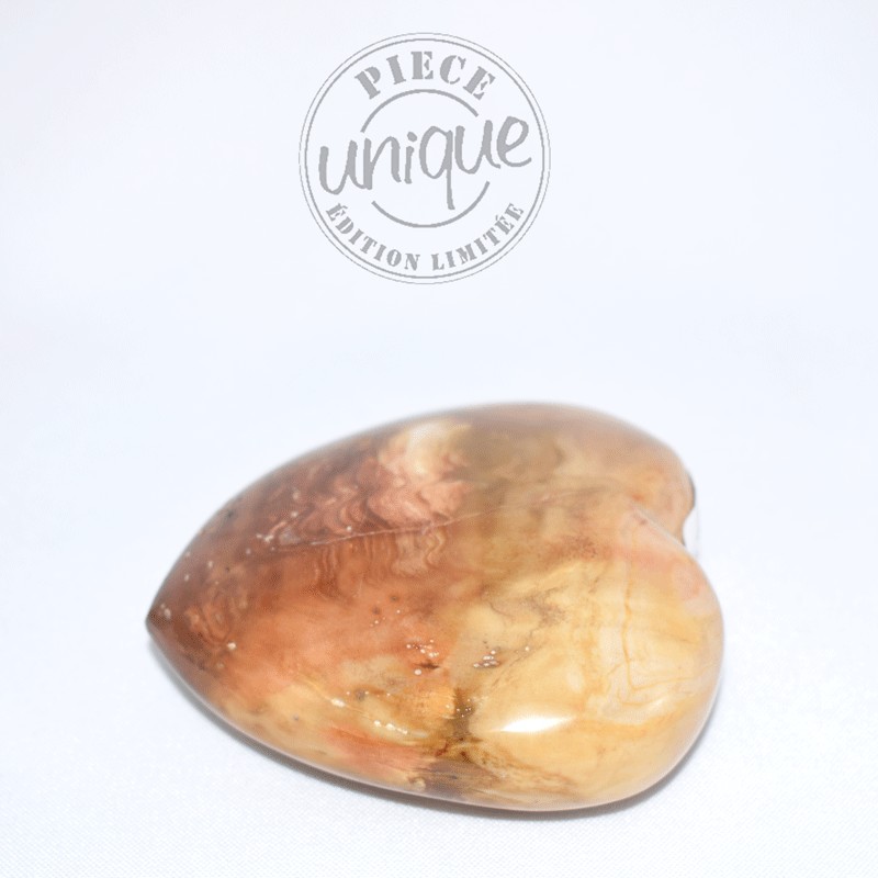 Bello corazón tallado a mano en madera fosilizada, origen Madagascar.