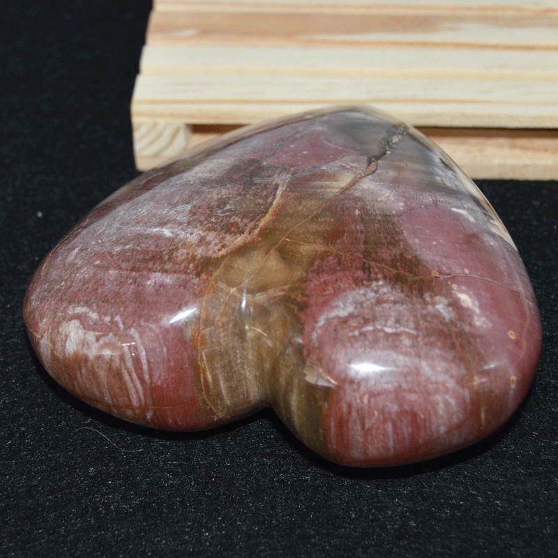 Bello corazón tallado en madera fosilizada, origen Madagascar.