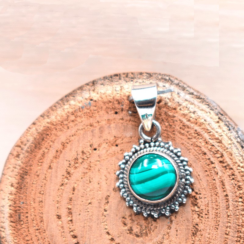 Bello colgante de Malaquita montado en plata de 925.