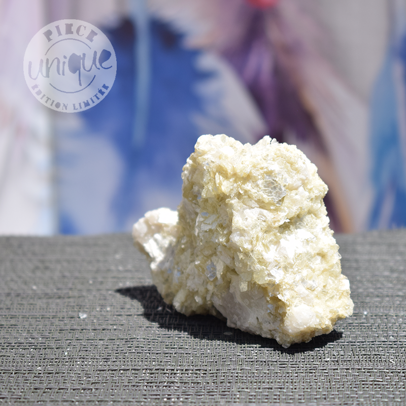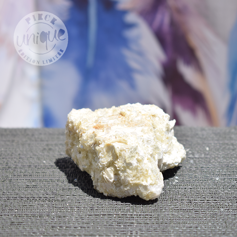 Se caracteriza por su estructura en hojas, que muy a menudo forma "paillettes", formas alargadas y con brillo de purpurina; también le da su esplendor metálico y su gran resistencia al calor.