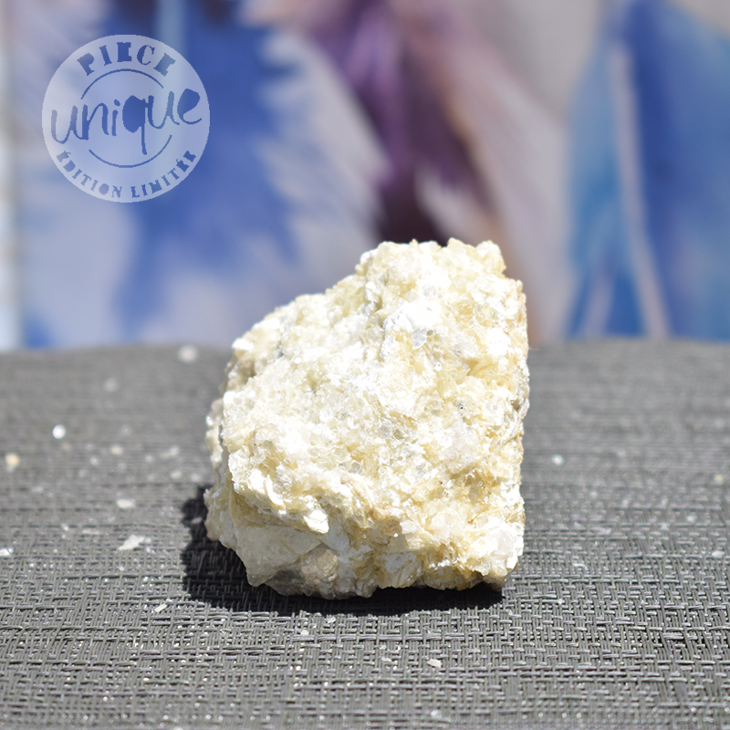 Se caracteriza por su estructura en hojas, que muy a menudo forma "paillettes", formas alargadas y con brillo de purpurina; también le da su esplendor metálico y su gran resistencia al calor.
