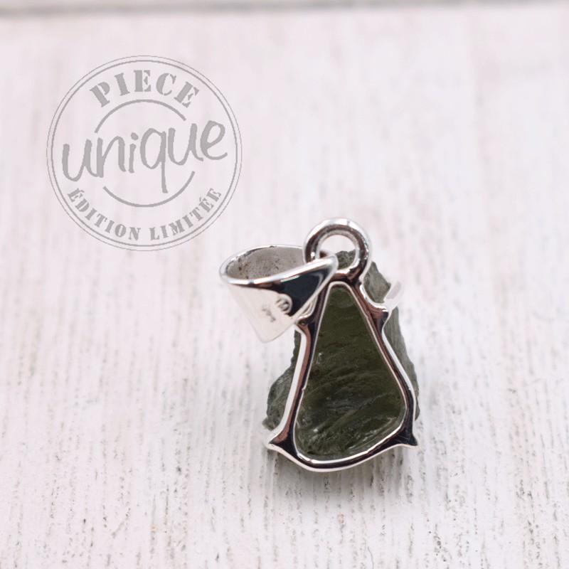 Bonito colgante de Moldavita bruta montada en plata de 925.