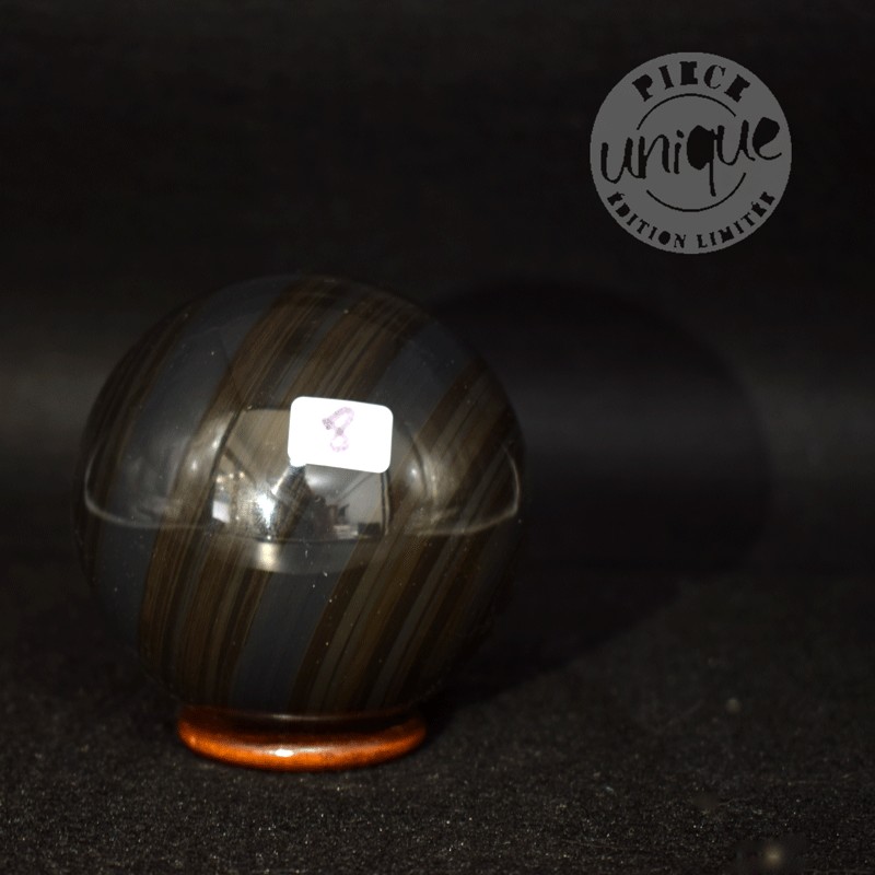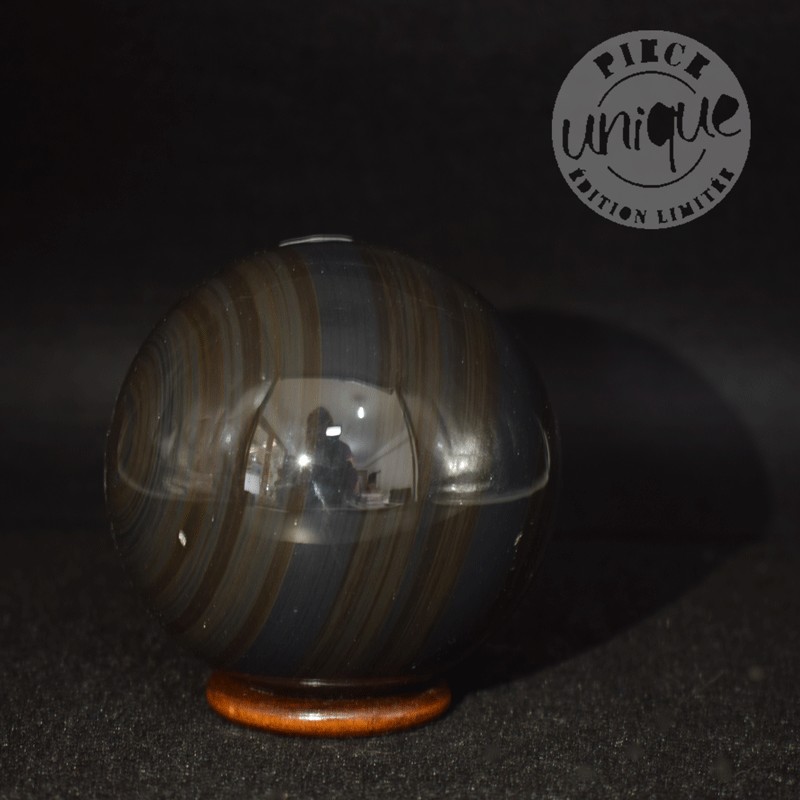 Bella esfera en Obsidiana Arco Iris de México. Se envía con un aro de bambú a modo de soporte.