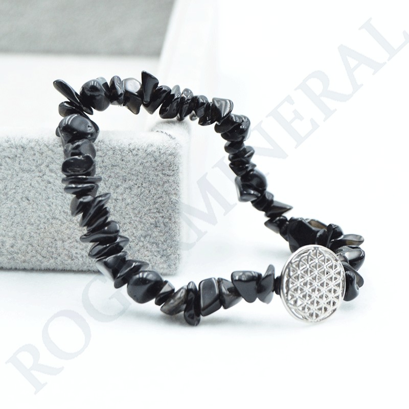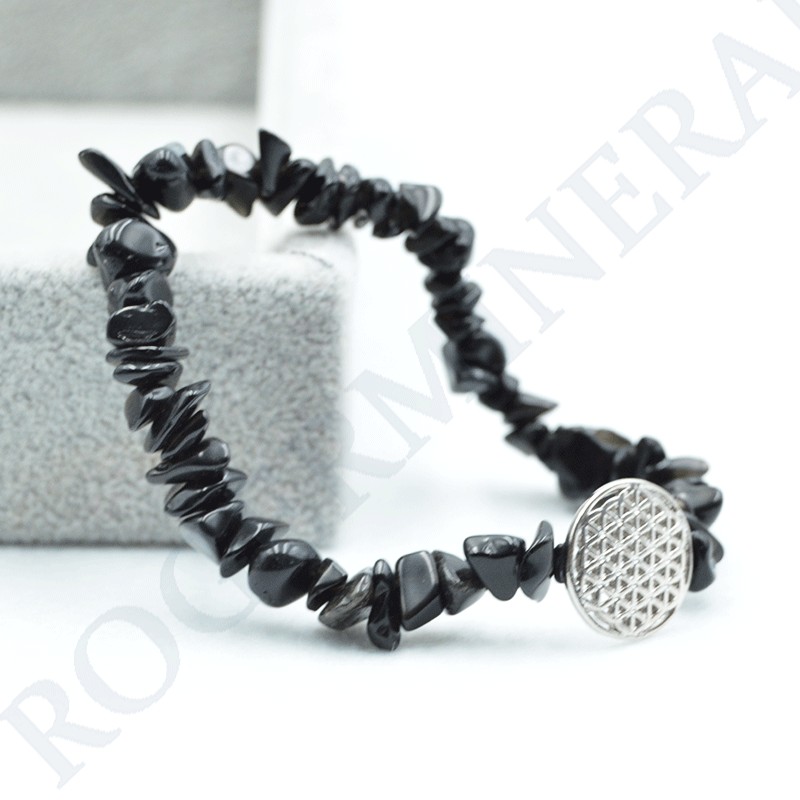 Pulsera Obsidiana barroca con Flor de Vida