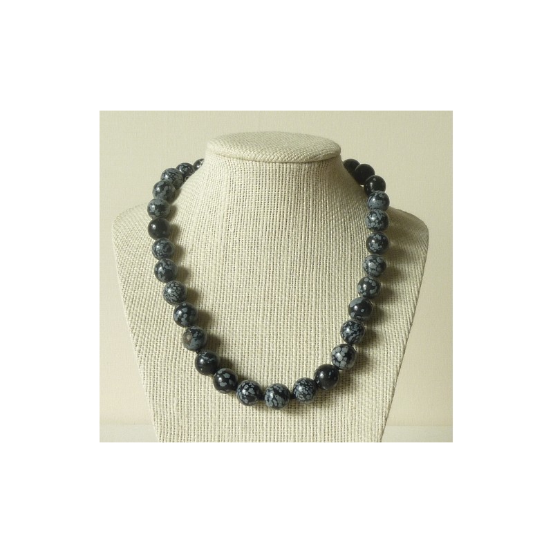 Bello collar en Obsidiana nevada, perlas redondas de 12mm