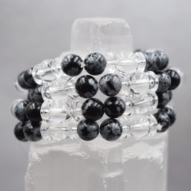 Bonita pulsera en Cristal de roca y Obsidiana nevada.