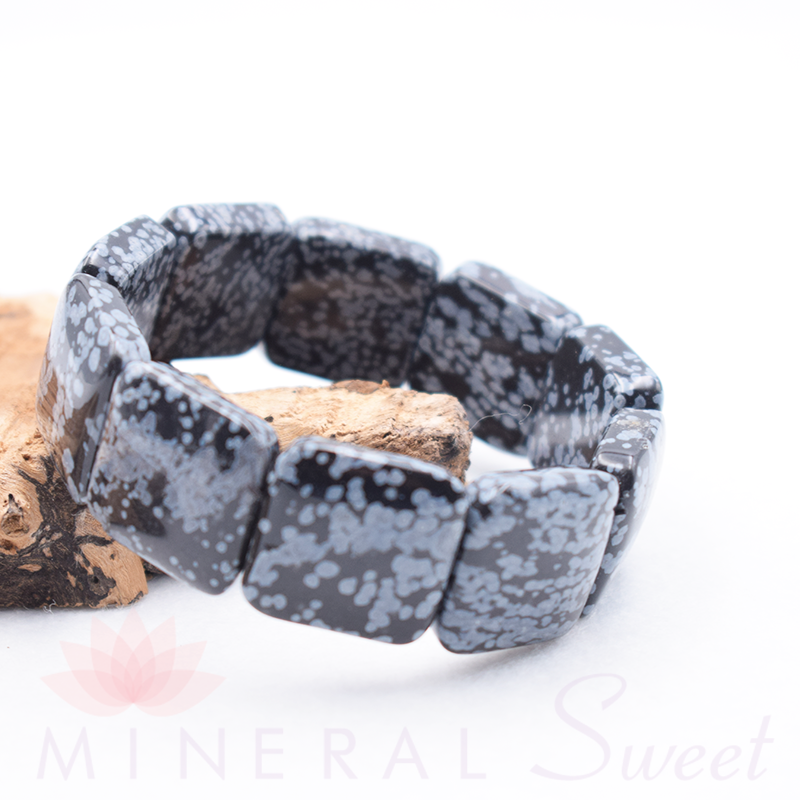 Bonita pulsera en Obsidiana nevada, perlas cuadradas de 20mm