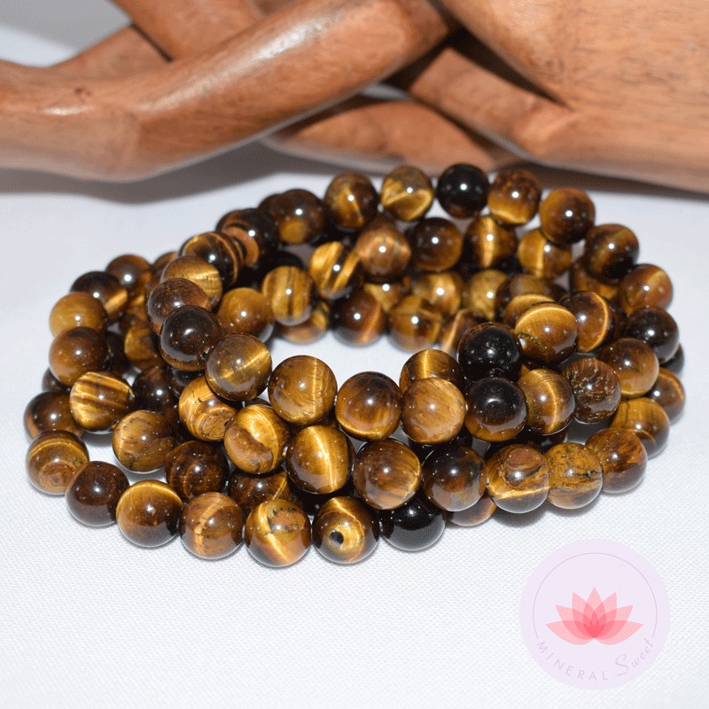 Elegante pulsera en Ojo de Tigre, perlas redondas de 10mm, talla para hombre.