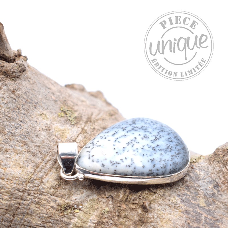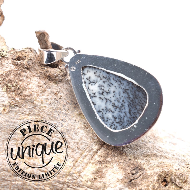 Colgante de Ópalo dendrítico montado en plata de 925.