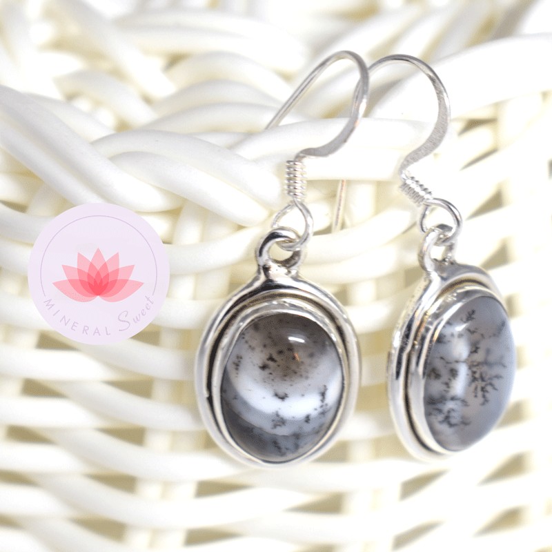 Pendientes de Ópalo dendrítico con montaje en plata de 925.
