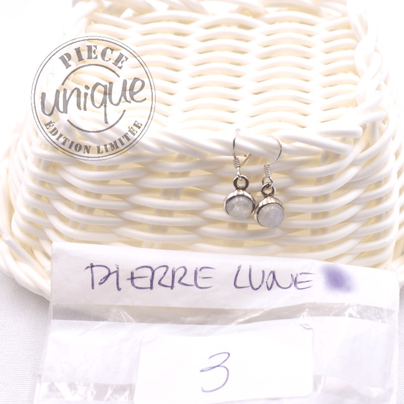 Bellos pendientes en Piedra de Luna montados en plata, forma circular.