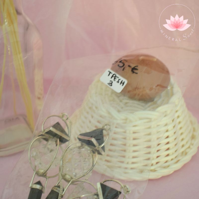 Péndulo formado por una punta biterminada y corona en pirámide de Shungit y pieza central de cubo de 64 pirámides en Cristal de roca. Montaje en plata.