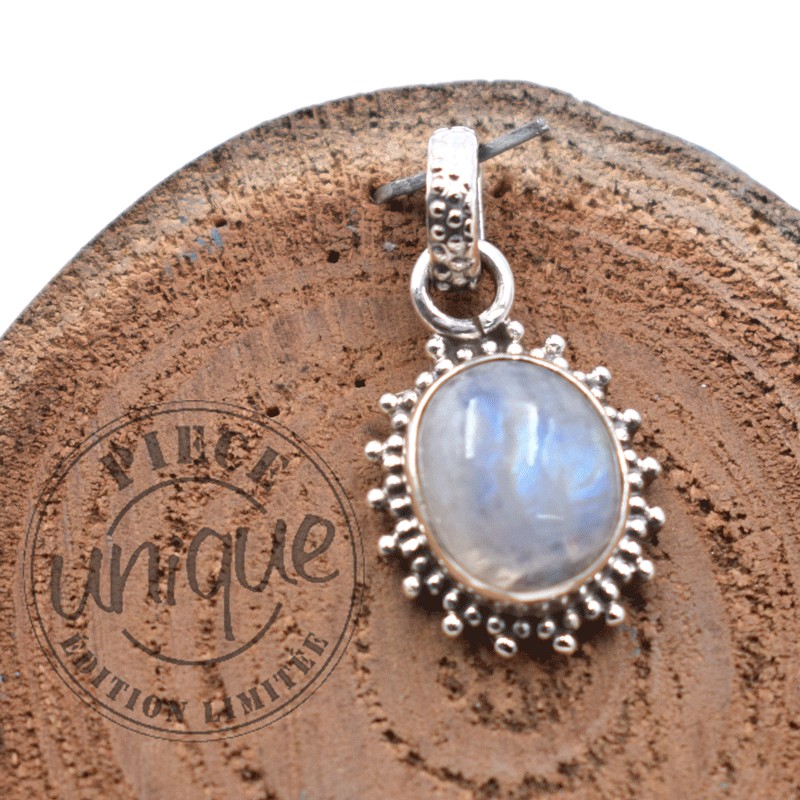 Bello colgante en Piedra de Luna de muy buena calidad, montado en plata de 925.
