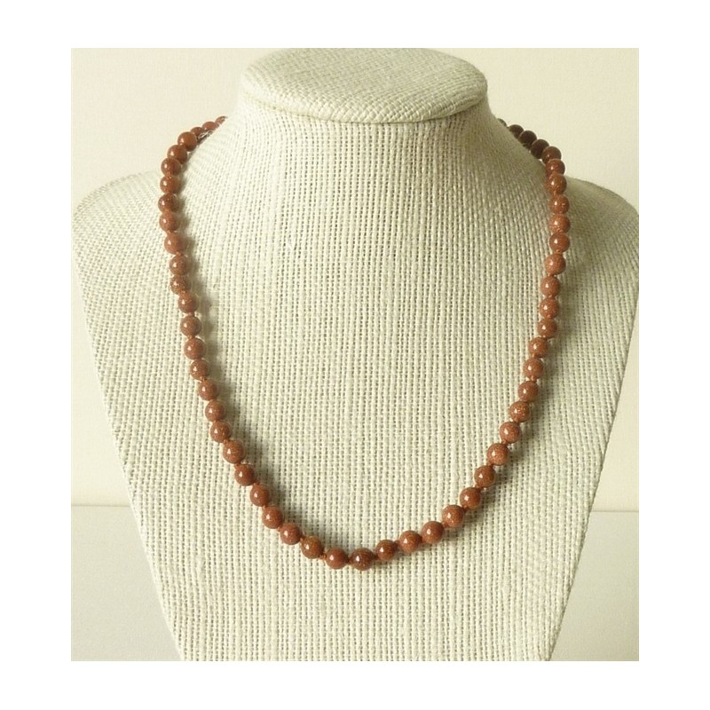 Bonito collar en Piedra de sol, perlas redondas de 6mm