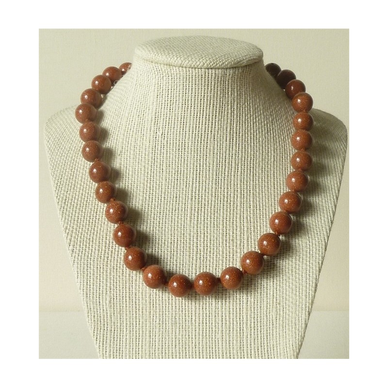 Elegante collar en Piedra de Sol, perlas redondas de 12mm