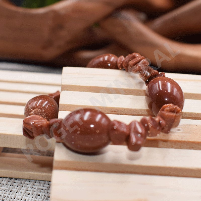 Bonita pulsera en chips y rodadas de Piedra de sol sintética.