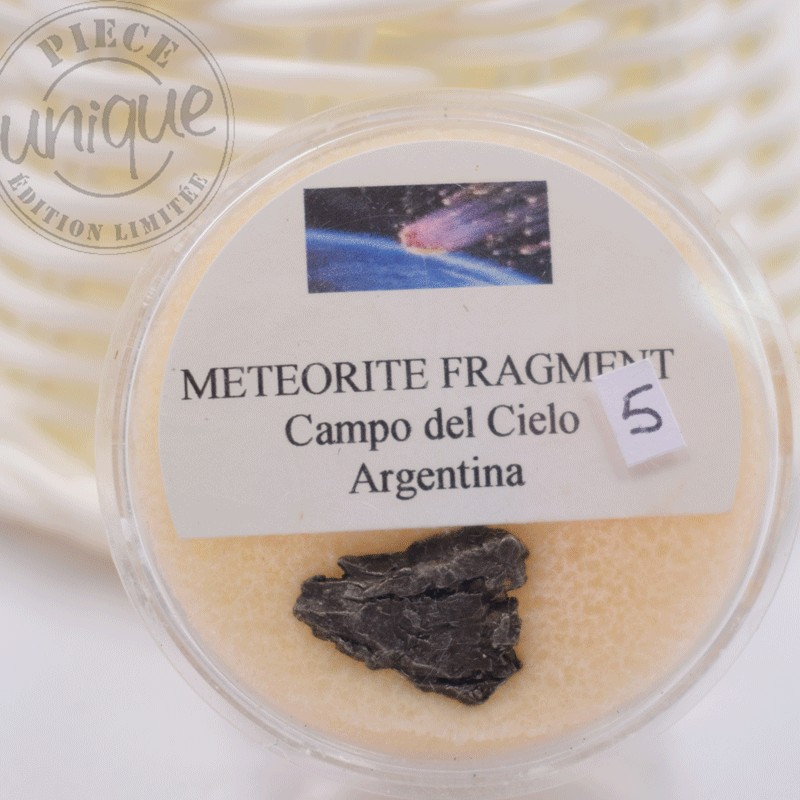 Fragmento de meteorito en su caja de colección, origen Argentina.