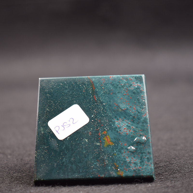 Este jaspe de dominante verde presenta manchas rojas; de aquí su otro nombre de jaspe sanguíneo, e igualmente jaspe heliotropo.