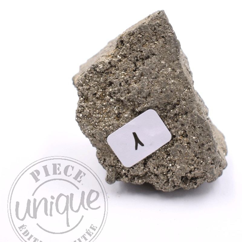 La pirita es positiva, solar, dinamizante, que ayuda a evacuar la melancolía, la tristeza, el sentimiento de inferioridad, y retorna la confianza en uno mismo.