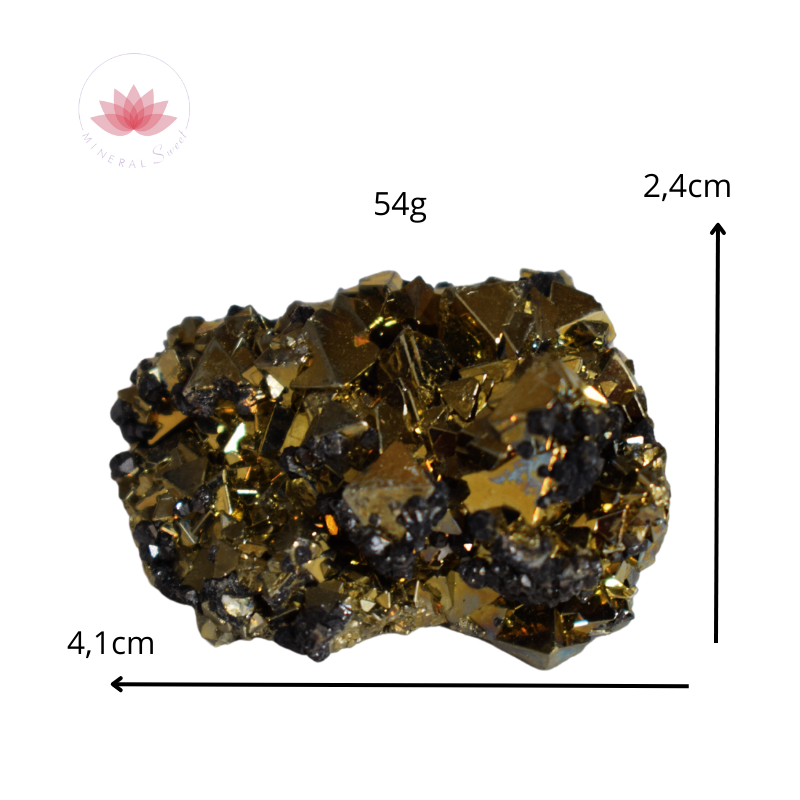 La pirita es positiva, solar, dinamizante, que ayuda a evacuar la melancolía, la tristeza, el sentimiento de inferioridad, y retorna la confianza en uno mismo.