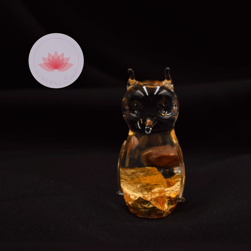 Buho en cristal con hojas de oro en su interior. Certificado de autenticidad, oro de Brasil.