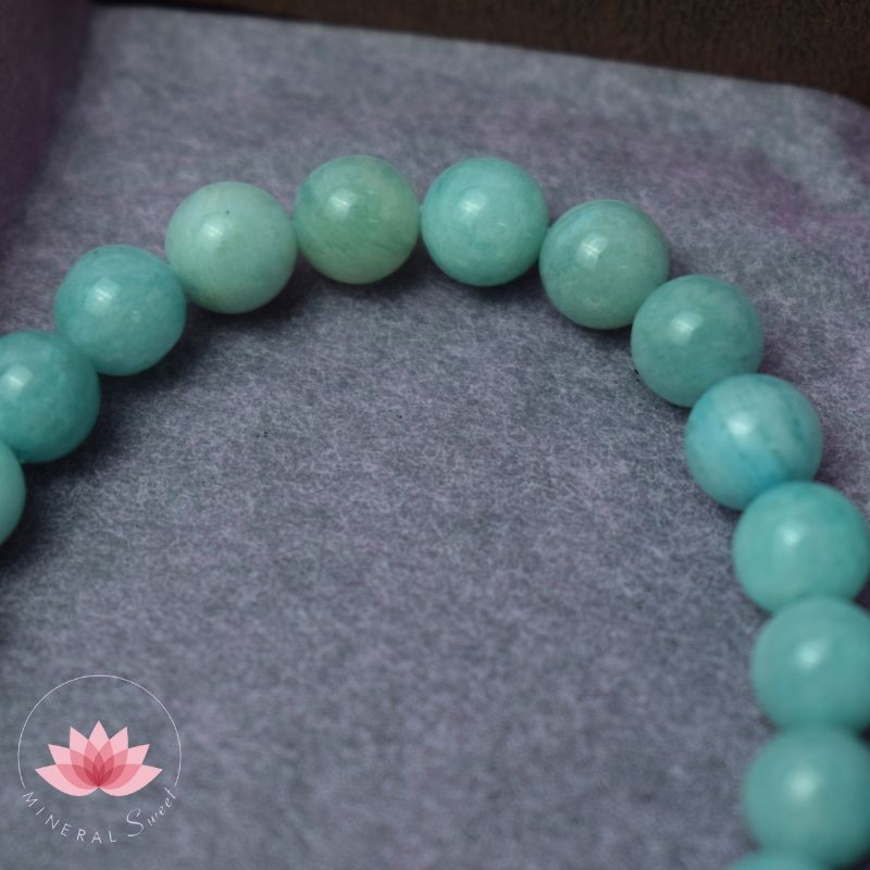 La Amazonita permite una mejor percepción de los sentimientos sinceros y recíprocos. Da un sentimiento de plenitud a quine la lleva. Piedra de calma, especialmente cuando se trata del sentimiento de la frustación. Es una piedra de determinación para la vida personal, y también es una piedra de expresión liberada.