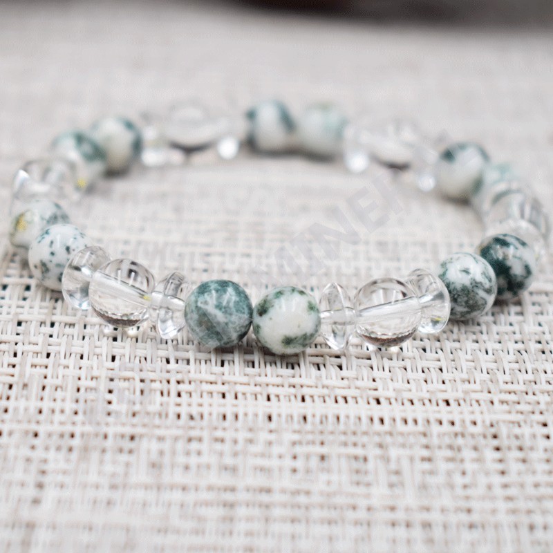 Bella pulsera en Cristal de roca y Jaspe dendrítico.