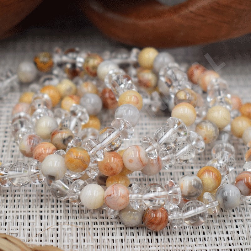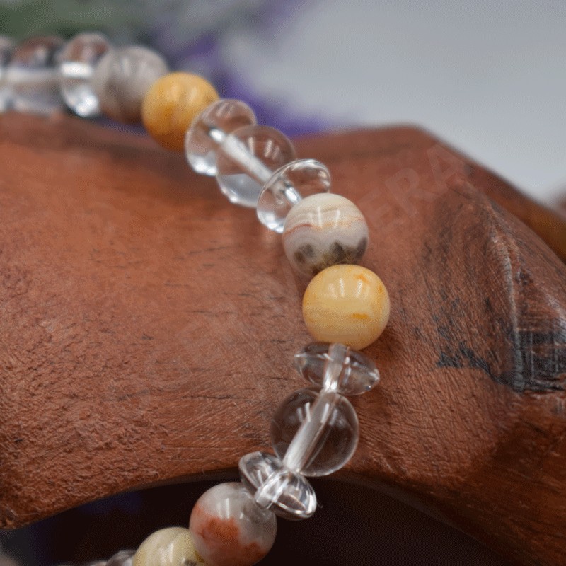 Elegante pulsera en Cristal de roca y Jaspe amarillo.