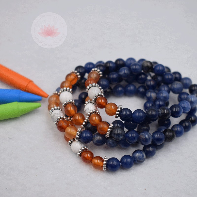 Pulsera niño en Sodalita, Cornalina y Howlita
