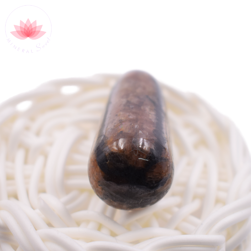 Esta piedra nos encuadra, nos reencuadra, evita la dispersión; por su color oscuro, da un sentimiento de protección, de afirmación de si mismo, evitando de este modo los miedos, la culpabilidad, los bloqueos que la persona se autoinflige. Favorece el sentido de las realidades y la sobriedad.