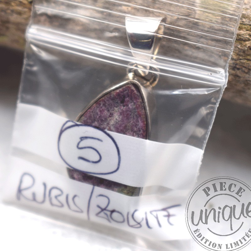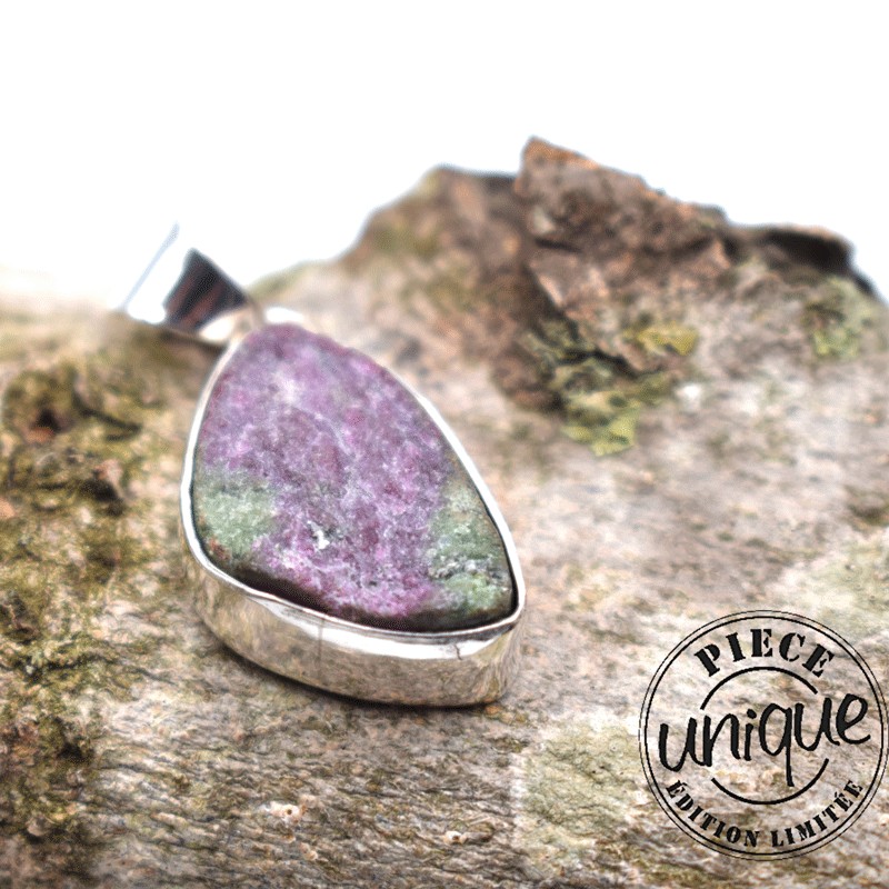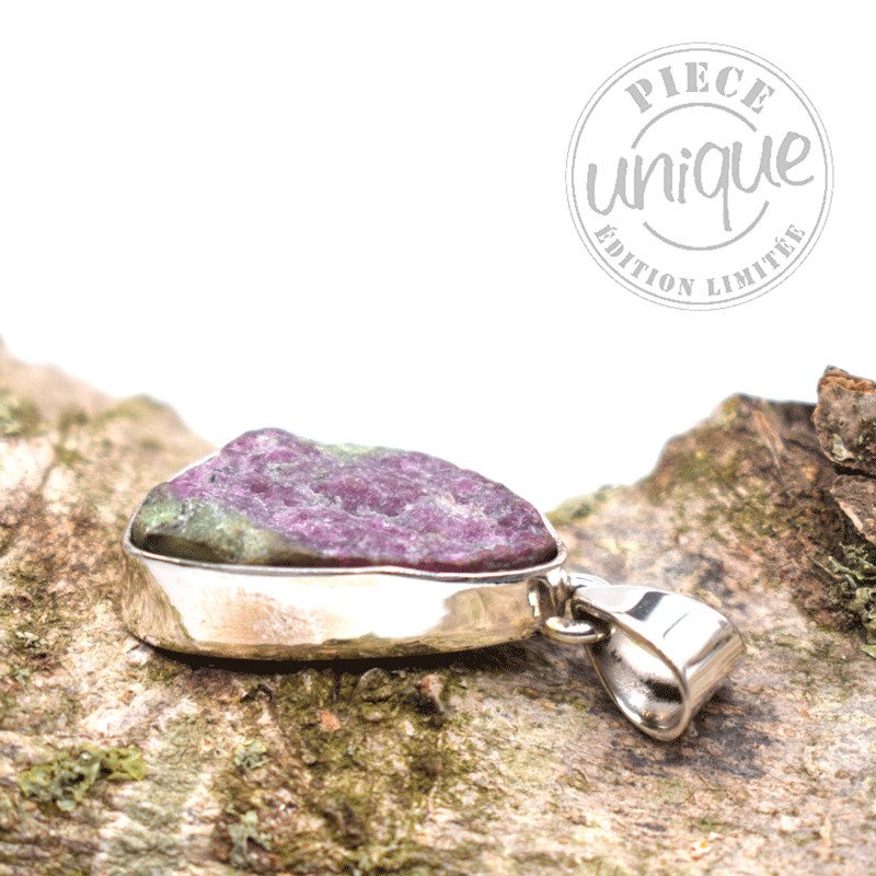 Bonito colgante en Rubí sobre Zoisita montado en plata.
