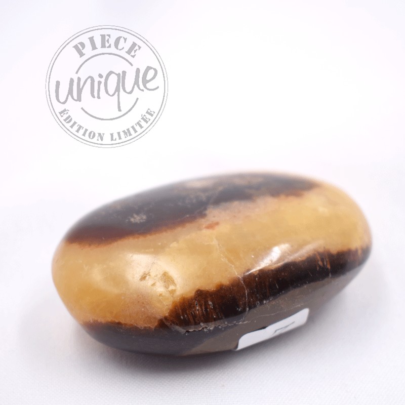 Es una piedra que permite el arraigo, ahora y aquí, con los pies firmes en el suelo y los pensamientos elevados, luminosos. También permite la abertura del espíritu; sus vetas amarillas anaranjadas están ligadas al chakra del plexo solar (tercero). En este sentido, refuerza la voluntad de emprender, la libertad de expresión y el sentido del contacto.