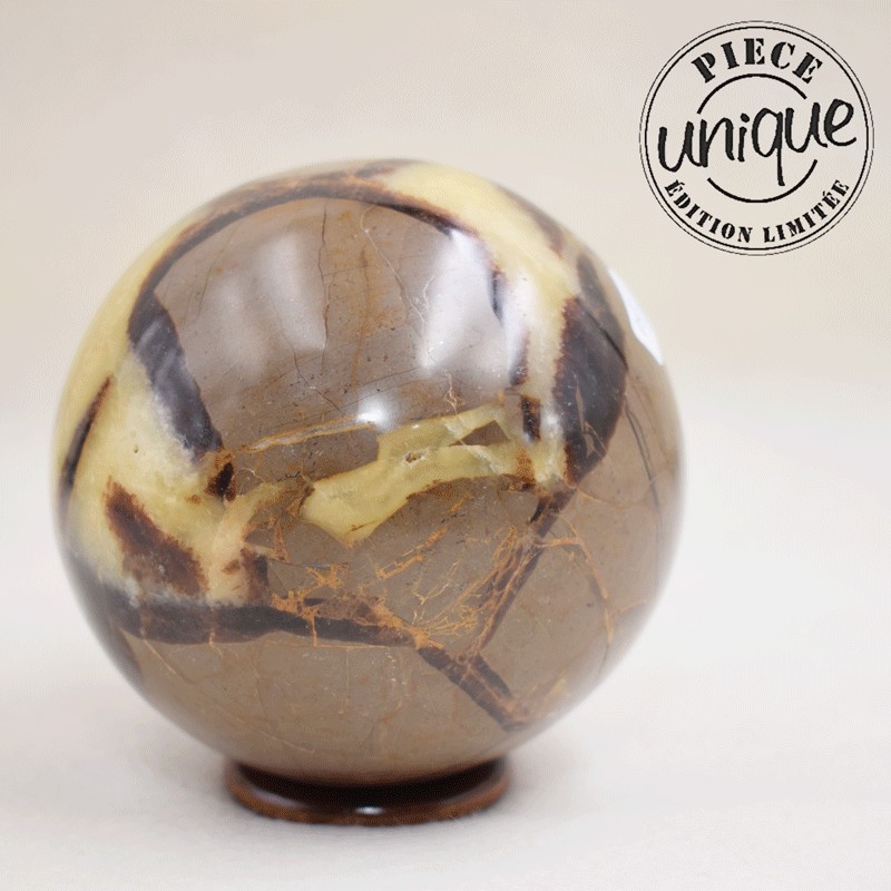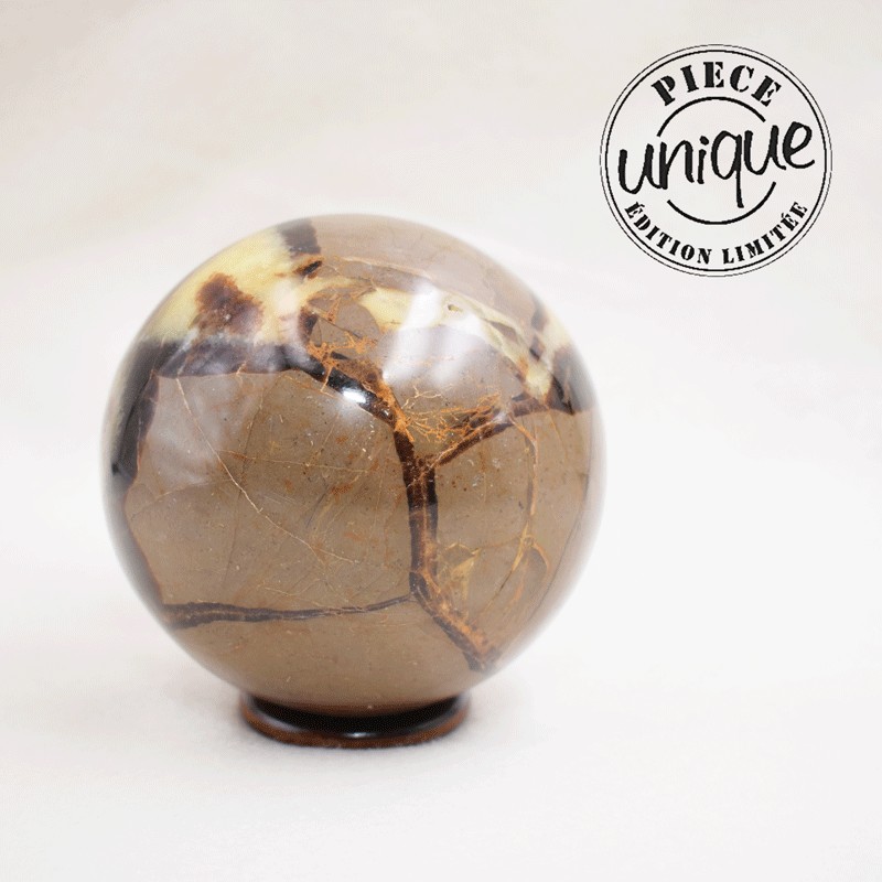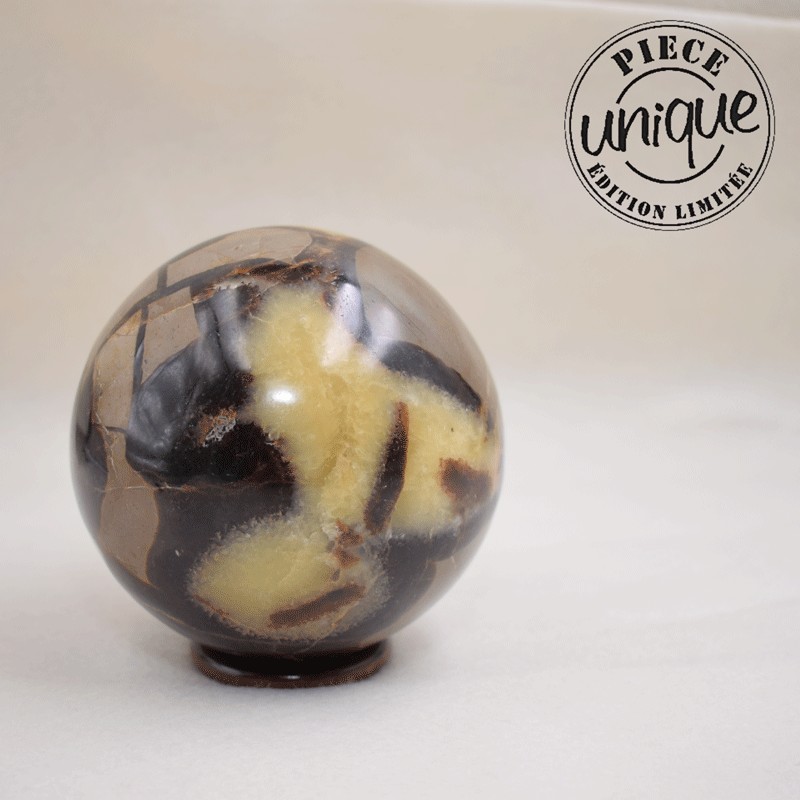 La septaria es una roca sedimentaria llamada marga, mezcla de caliza y arcilla, de composición química (CaCO3), y de calcita amarilla, de composición química CaCO3.