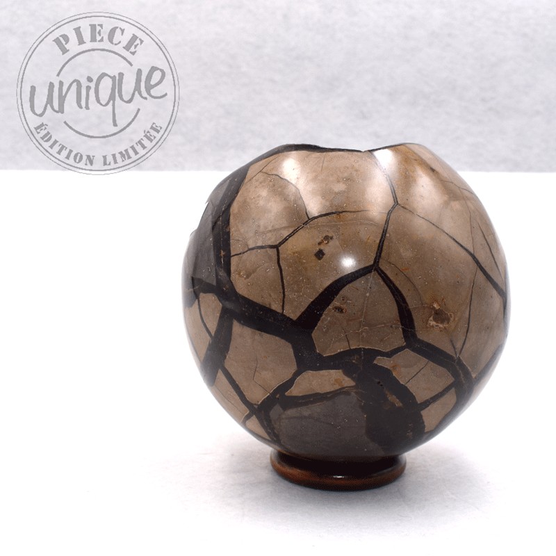 Bella forma libre esférica tallada en Septaria salvaje de Madagascar.